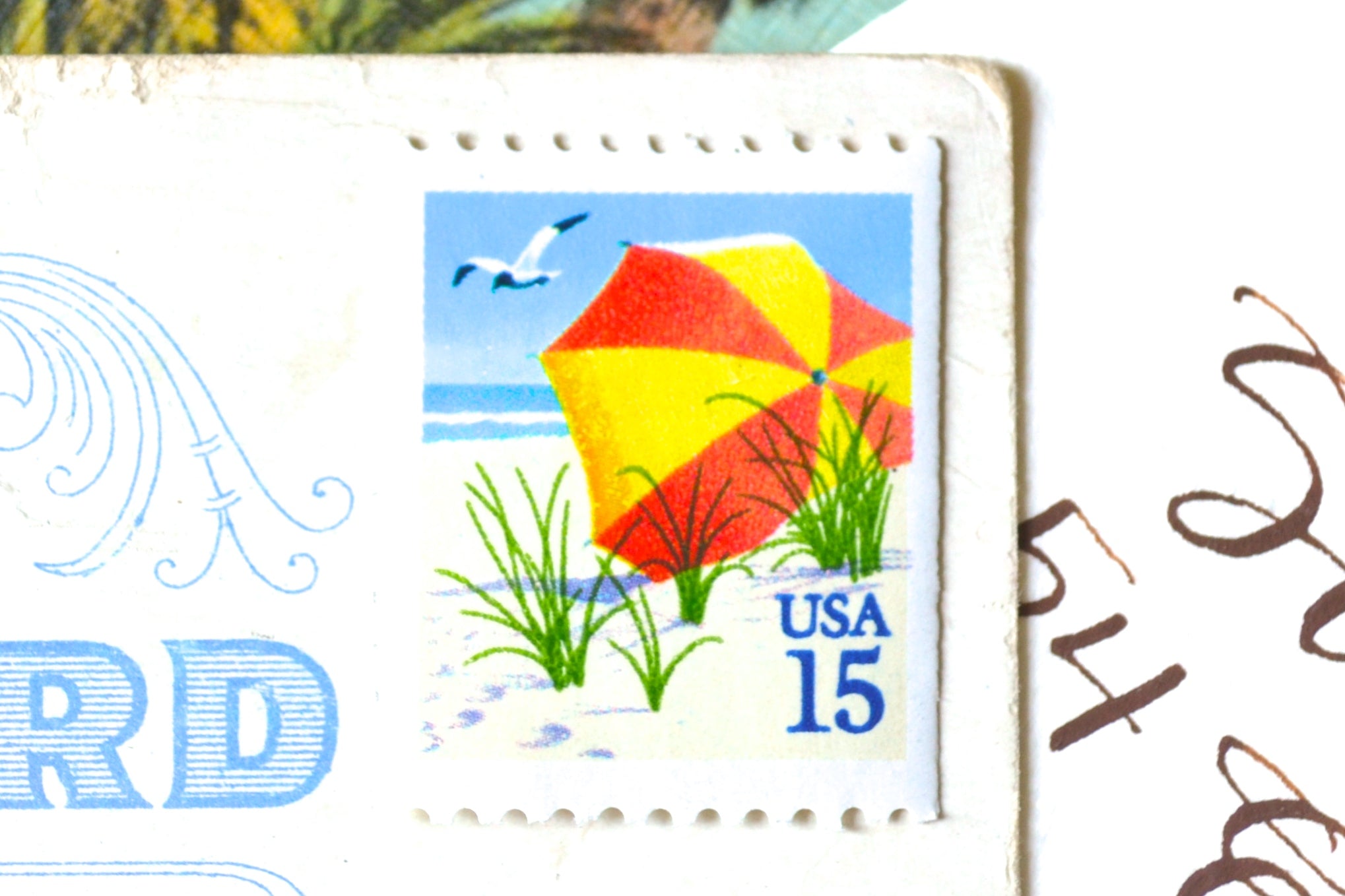10 Beach Umbrella Stamps Unused Vintage Postage Stamps Beach Vacation Stamps for Mailing